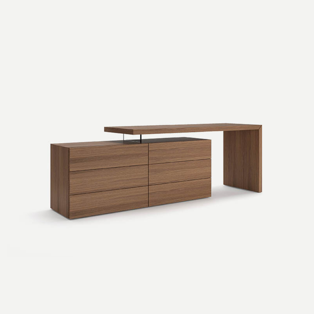Un bureau, un poste de travail et une table. Domino a sa propre identité : formelle et fonctionnelle, elle peut être utilisée de différentes manières et en différents lieux. Il s'intègre parfaitement aux collections People et Spazio avec lesquelles il partage des finitions et des caractéristiques de design : design minimaliste et essentiel réalisé avec le système exclusif de « pliage » Pianca. Domino est disponible dans de nombreuses dimensions et configurations : en tant que bureau autoportant, il est disponible avec deux côtés en bois ou avec des pieds en métal ; en tant que bureau intégré, il peut être ancré au mur.